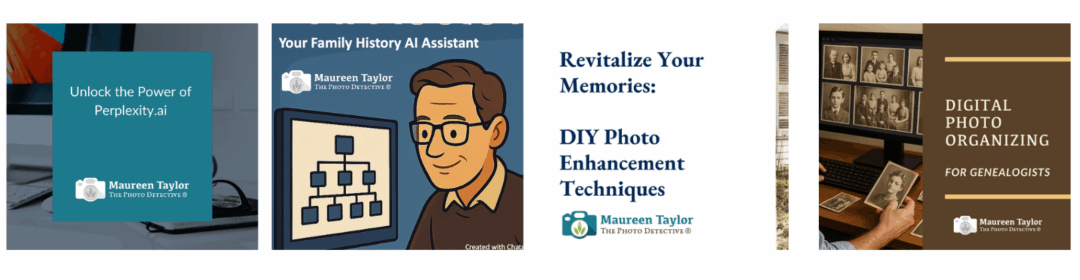 Do you have a group that would like to learn a lot about historical photographs and genealogy from Maureen? She offers virtual webinars and interactive workshops, all-day virtual seminars, as well as keynote speeches Below we list some example topics, but feel free to request unlisted topics as well!