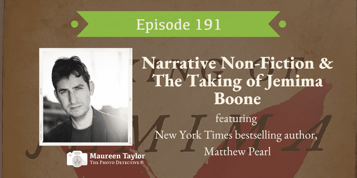 This week Maureen Taylor, The Photo Detective, is joined by New York Times bestselling author, Matthew Pearl. He and Maureen discuss the differences between fiction and non-fiction writing, and how little details from our history can change the course of the stories that we tell.
