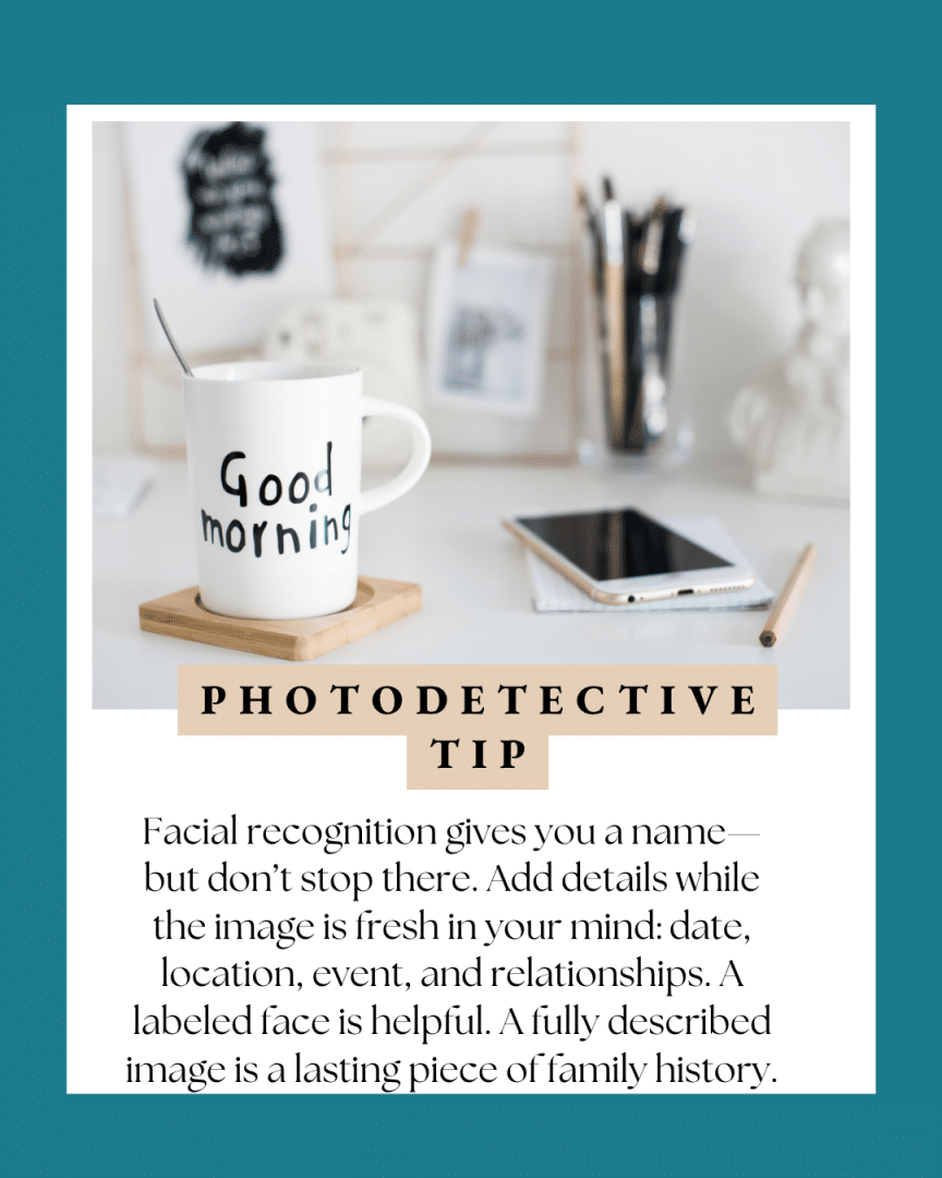 Even better, the system groups images by event or context. That means you’re not looking at random faces—you’re seeing people surrounded by visual clues: clothing, companions, locations. That context is exactly what genealogists need to make accurate identifications.